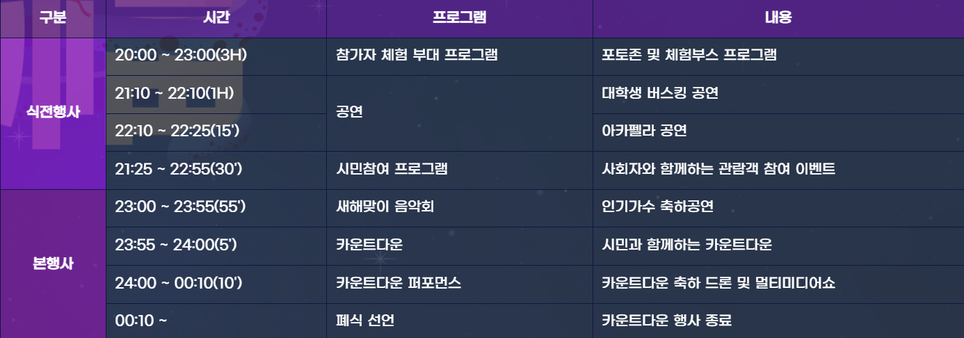 🌟 새해맞이 음악회, 카운트다운, 카운트다운 퍼포먼스, 드론라이트쇼, 폐식 선언