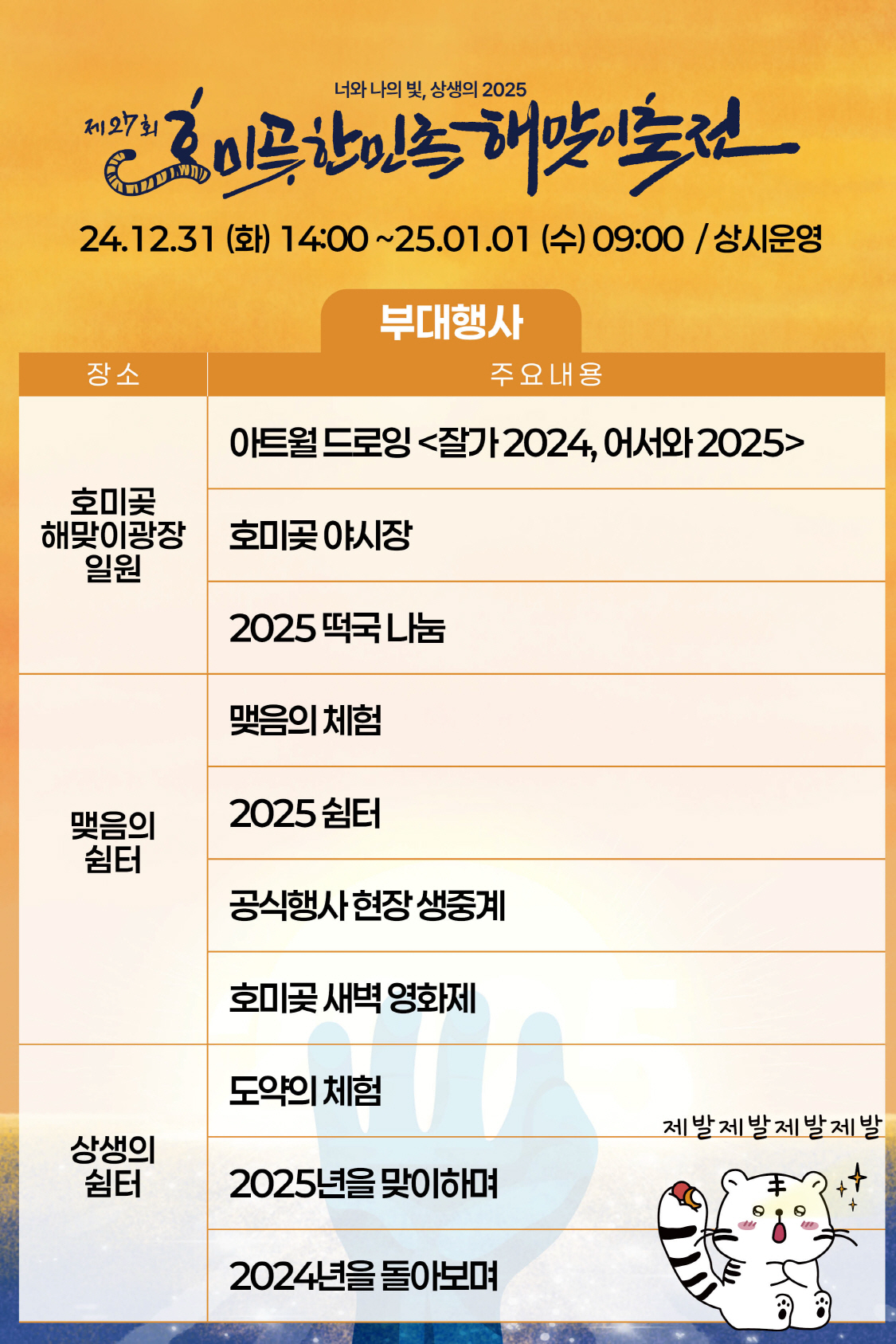 🌅 호미곶 야시장, 떡국 나눔, 상생의 쉼터, 랜덤플레이댄스, 버스킹페스티벌, 체험 프로그램 등