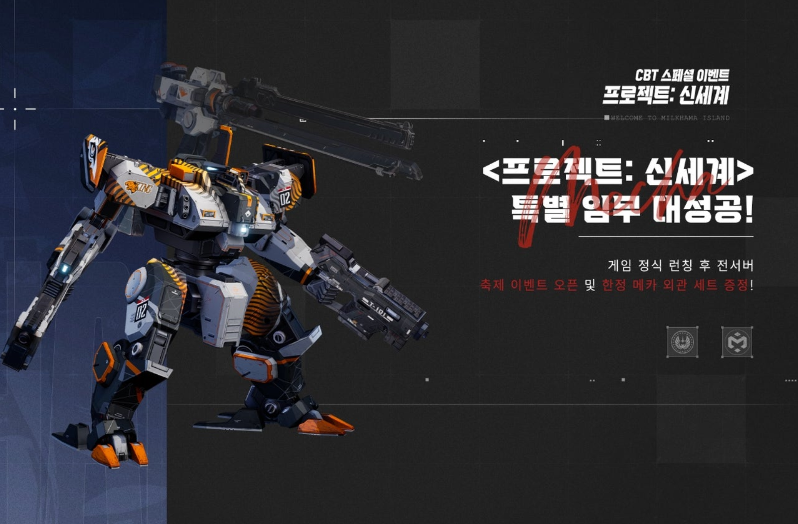 - 사전 예약자 수 목표 달성 보상 : 밀하마 달러 8888, 예비 에너지 5개, 운송 허가증 20개, A급 메카 선택 상자 1개 (메가터틀, 로드러너, 오로라 중 선택 가능)