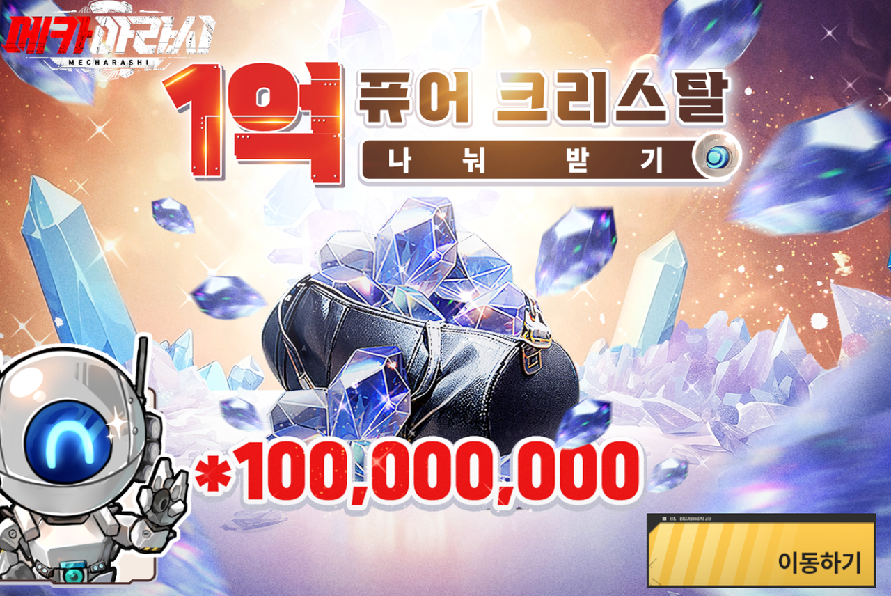 - 이벤트 보상 : 퓨어 크리스탈, 모집 증서, 운송 허가증, 완전체 메카 운송 허가증, 공식 사이트 쿠폰
