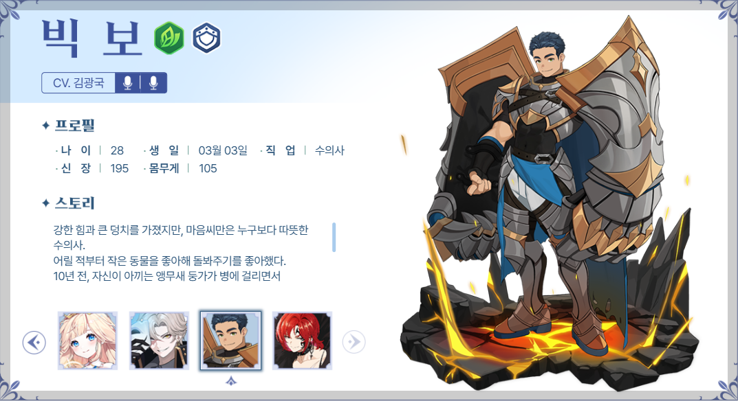 | A급 | 샤샤, 올리비에, 루나, 막시밀리안 등 | 샤샤 : 체력 회복과 디버프 능력으로 지원 역할에 적합 올리비에 : 초보자에게 적합한 유지력 강한 탱커 루나 : 범위와 단일 딜 모두 준수하며 초보자도 쉽게 육성 가능 |