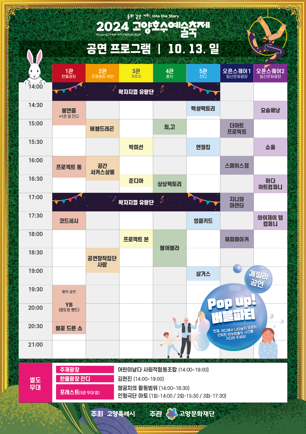 - 컨템포러리 서커스, 거리극, 거리무용, 인형극, 마술 등 100회 이상의 거리예술공연