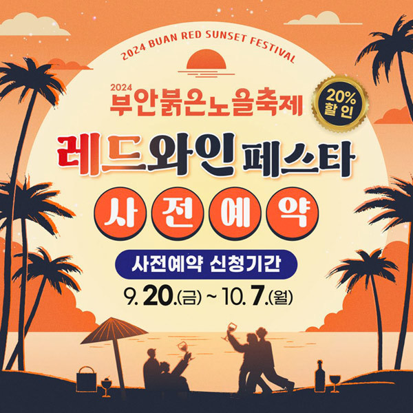 '2024 부안붉은노을축제'는 10월 11일부터 13일까지 3일간, 서해에서 노을이 아름답기로 유명한 부안군 변산해수욕장에서 개최됩니다. 이 축제는 붉은노을과 함께하는 다양한 행사를 통해 방문객들에게 잊지 못할 경험을 선사할 예정입니다. 주요 행사로는 레드와인페스타, 재즈페스티벌, 제2회 부안붉은노을동요제, 카이트 카니발(대형 연) 등이 포함되며, 누구나 자유롭게 관람하고 참여할 수 있습니다. 이 다채로운 축제는 아름다운 노을을 배경으로 음악과 문화, 그리고 지역 특색을 즐길 수 있는 특별한 시간이 될 것입니다.