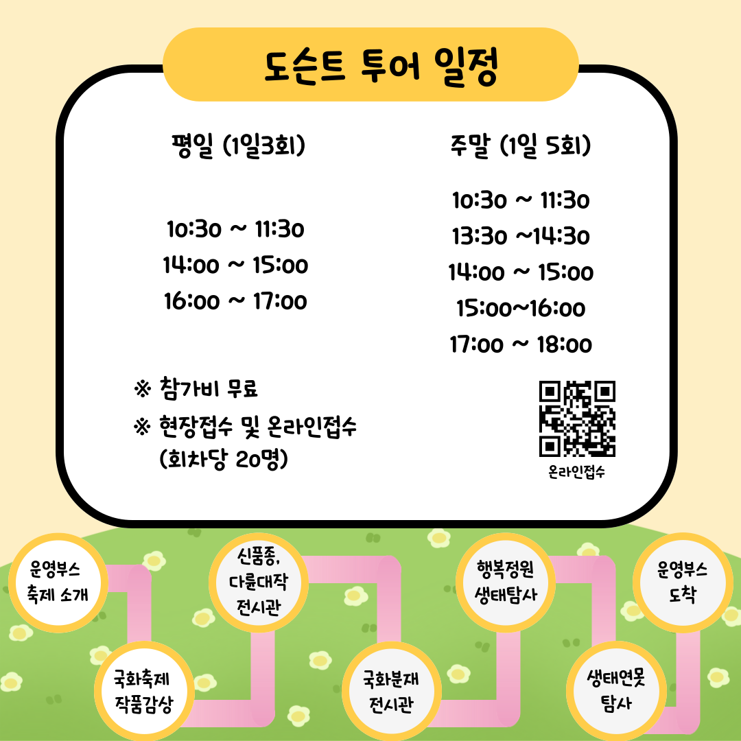 2) 예약 : 현장접수 및 온라인 접수 (회차당 20명)