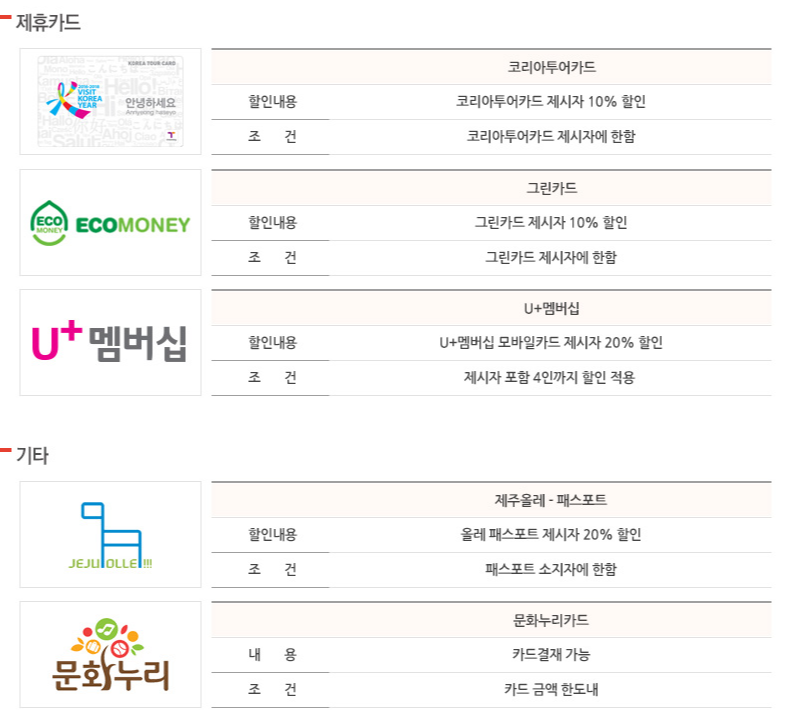 경 로 | 13,000원 | 10,000원 | 9,100원 | 만65세 이상(신분증 또는 경로우대증 소지) |