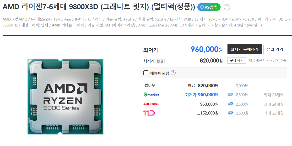 AMD Ryzen 7 9800X3D 현재 가장 저렴하게 구매하는 방법